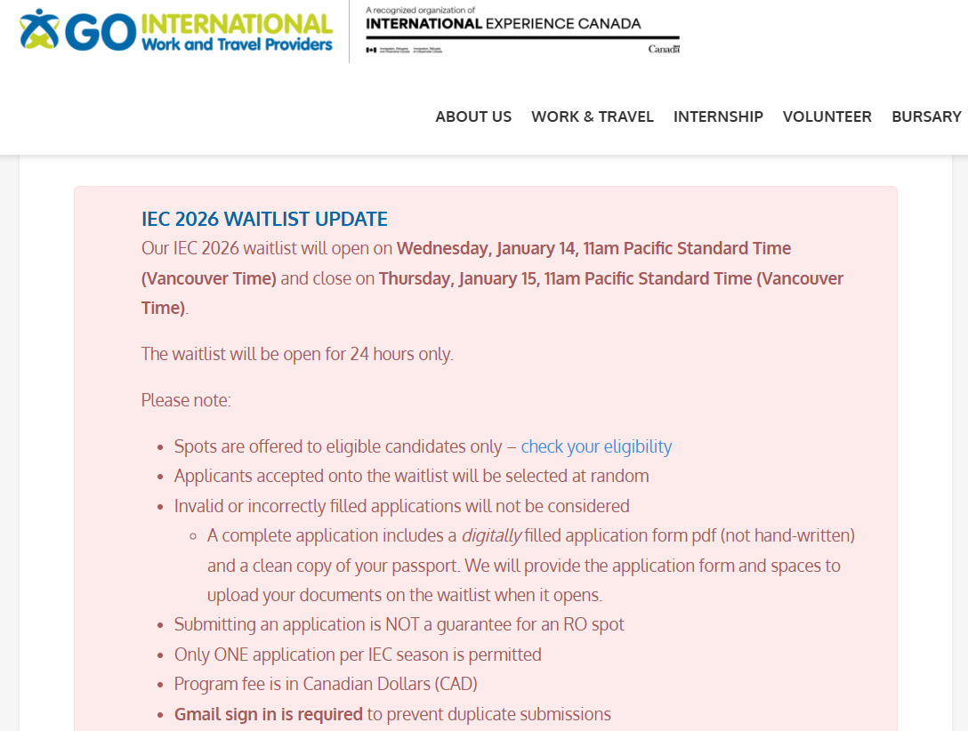 ⚠️The invitation is guaranteed, but not the approval: You must still meet all eligibility requirements and submit every required document on time. After receiving an invitation, the process follows the same steps as the regular IEC application. If you make mistakes or miss a deadline, your application will be refused.