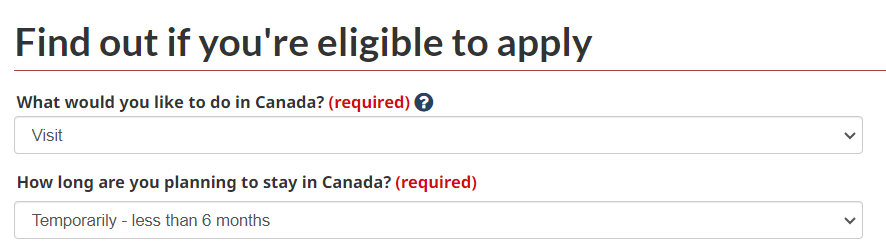 If you answered all questions truthfully and correctly, the result at the end must be Visitors (in Canada)