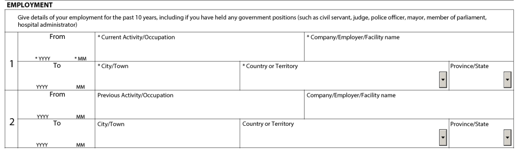 If you had more employers in the last 10 years, you can create an additional Word or Excel Sheet with the entries.