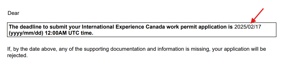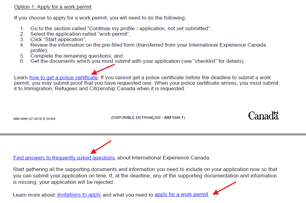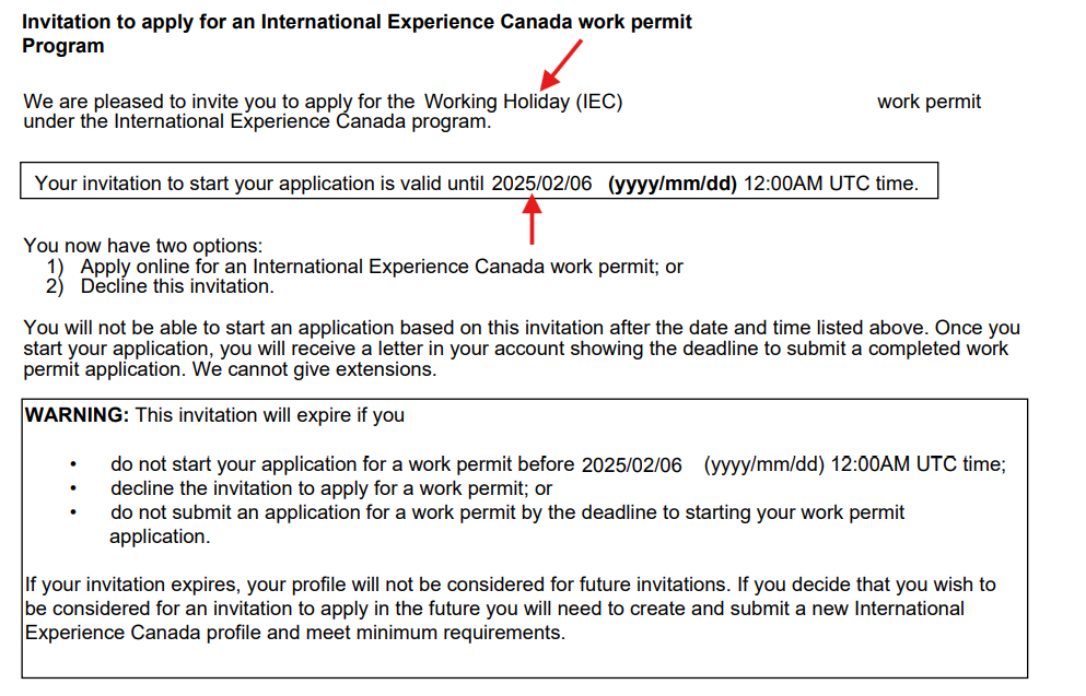 - If you accept your invitation with “Start application” at 7:25 a.m., you must submit your IEC work permit application before 7:25 a.m. 20 days later.