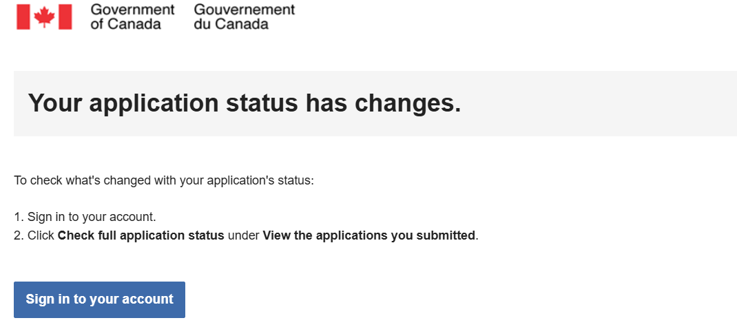 After about 24 hours you will receive an e-mail notification with “Your application status has changes.”