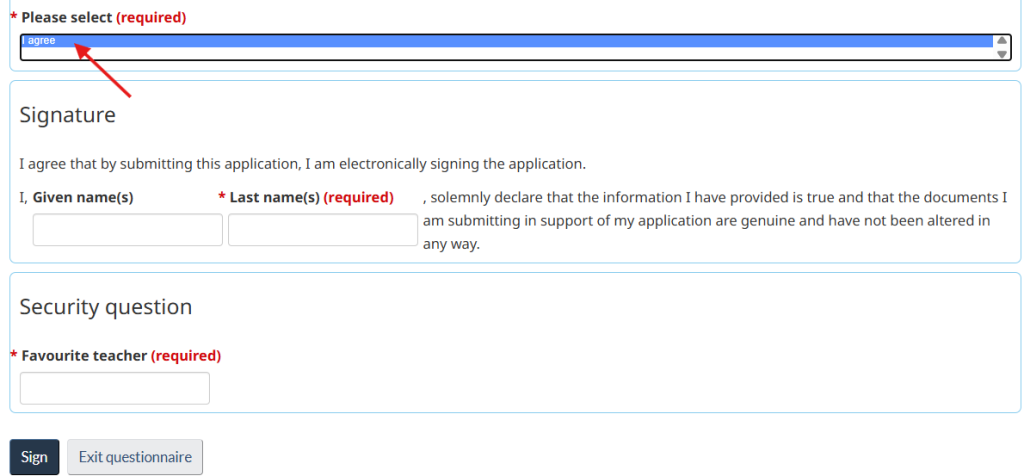 - Finally, click “Sign.” This electronic signature confirms that all the information you provided is true.